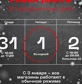 2 января работает только магазин на Копылова 42 с 10 до 20ч.