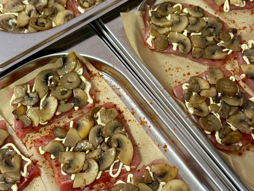 1. Отбивная из свинины с грибами (вторая начинка - ананас) и сыром